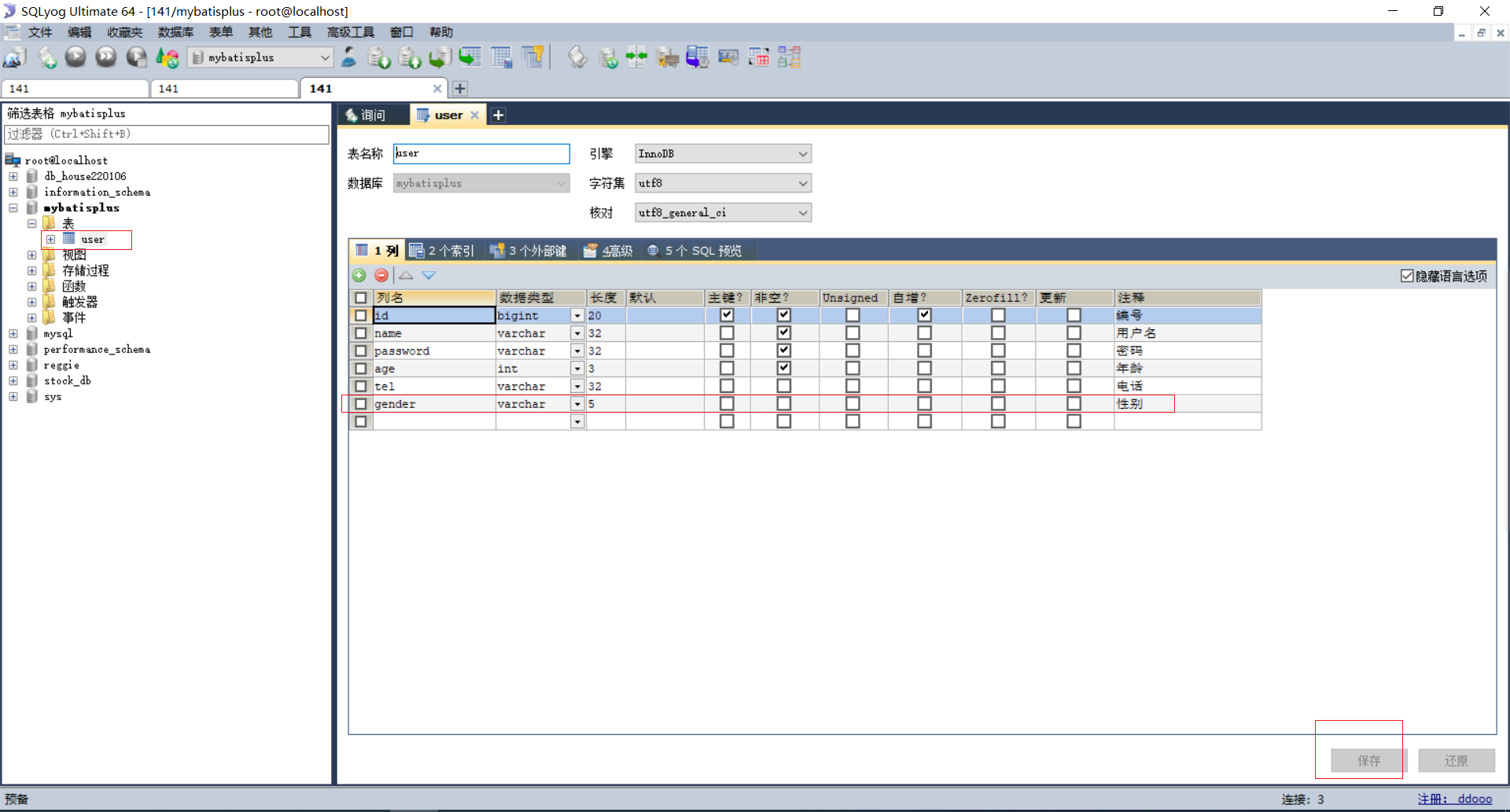 新建一个数据库mybatisplyus