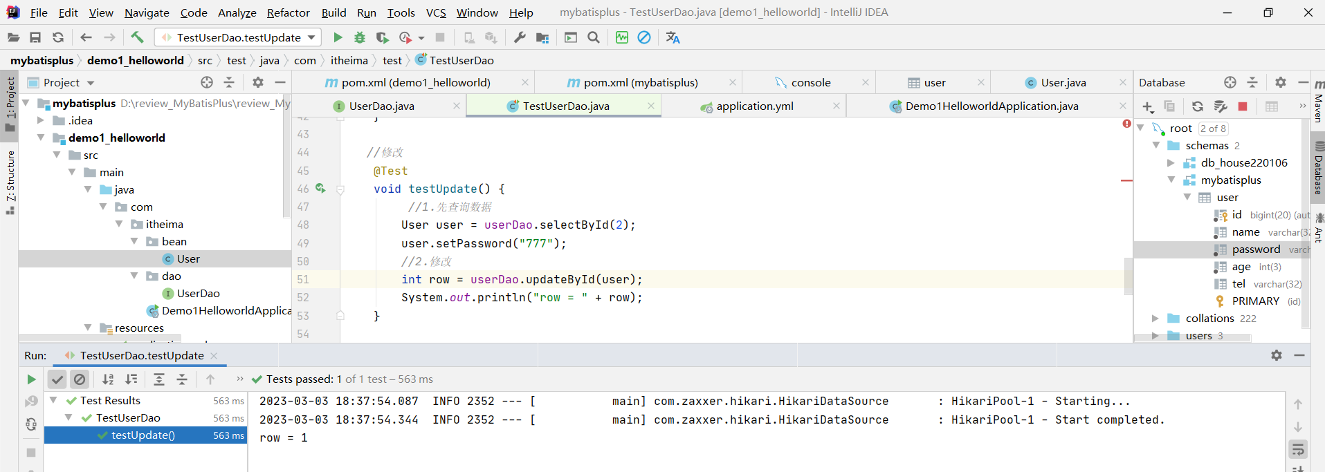 int row = userDao.updateById(user);