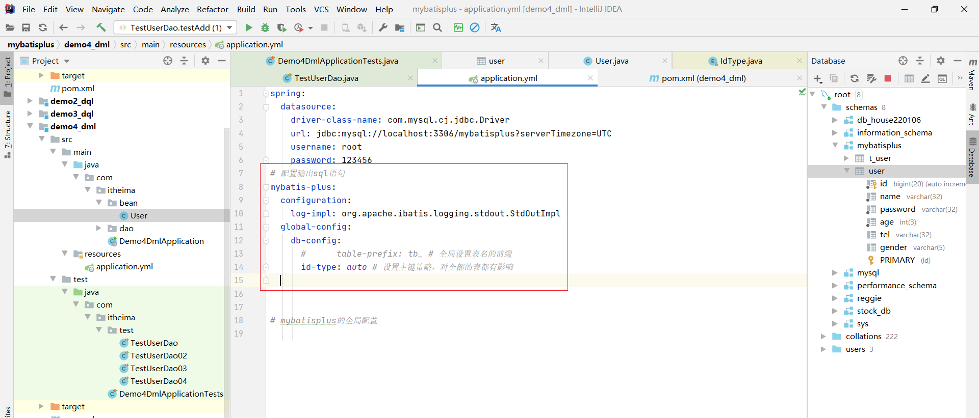 url: jdbc:mysql://localhost:3306/mybatisplus?serverTimezone=UTC
