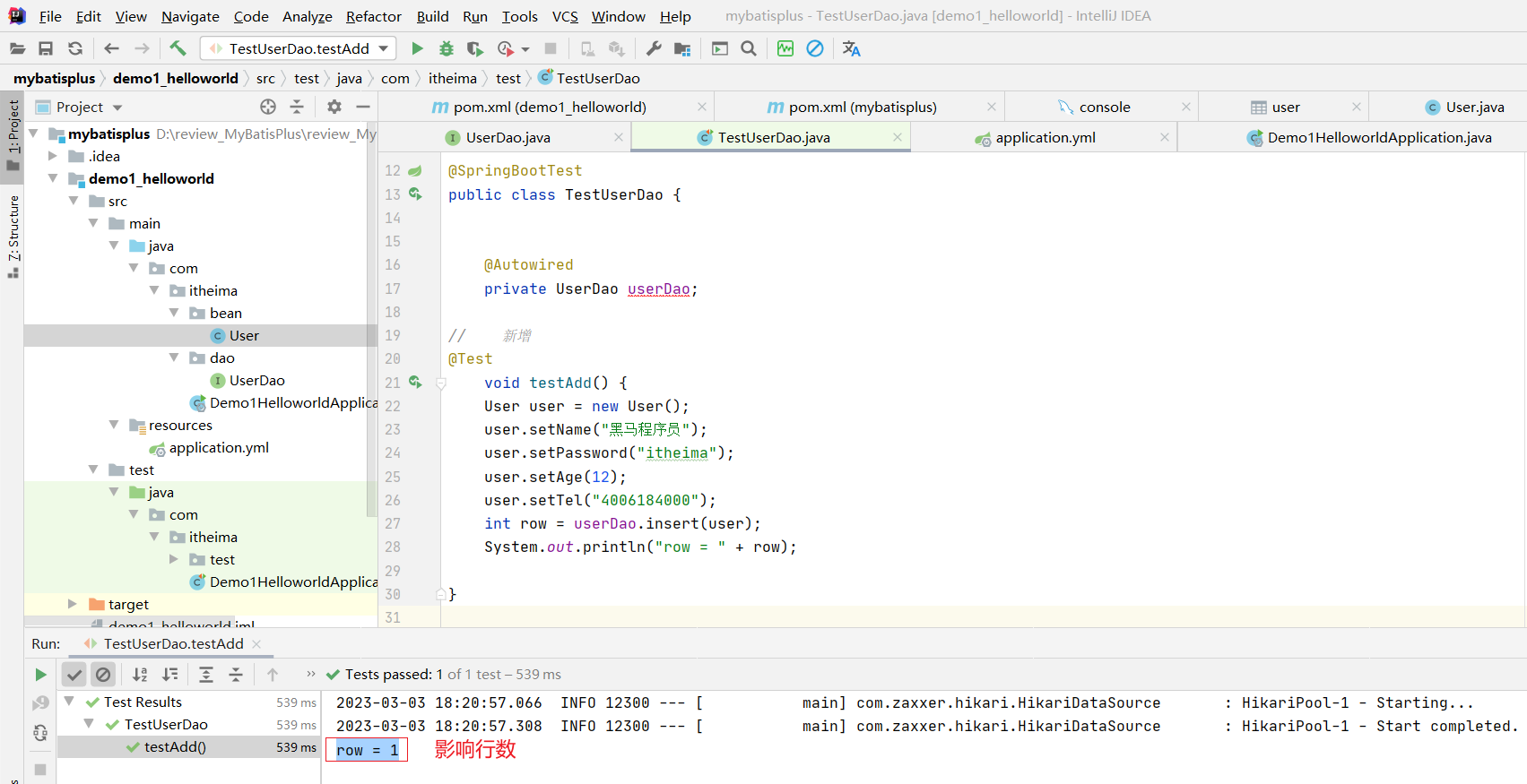 int row = userDao.insert(user);