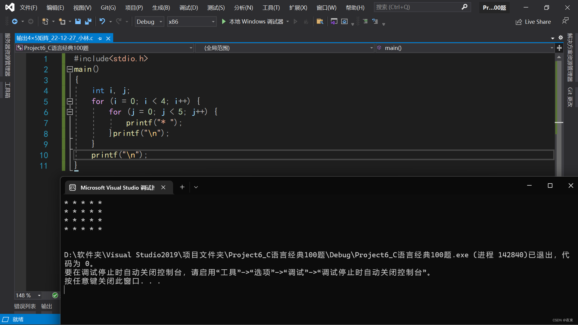 C语言实现输出4*5的矩阵。