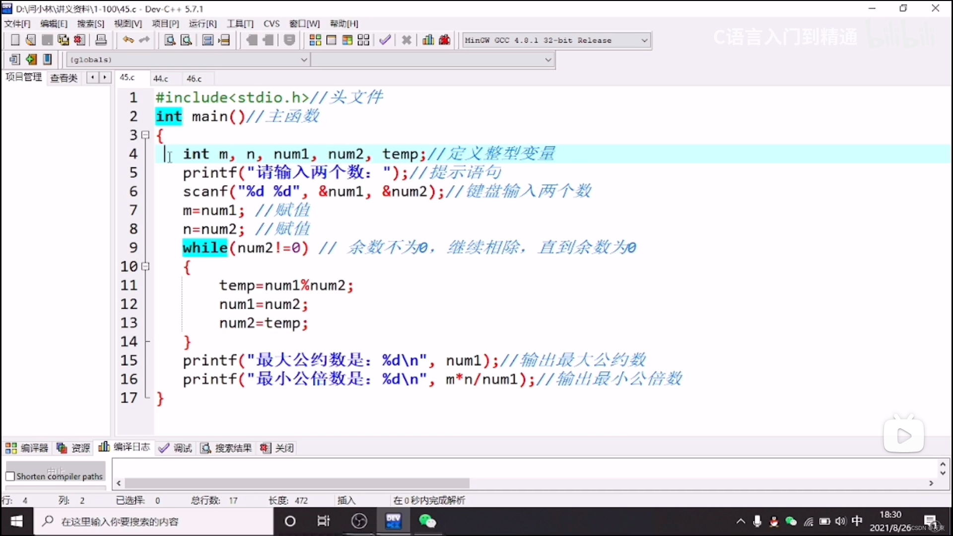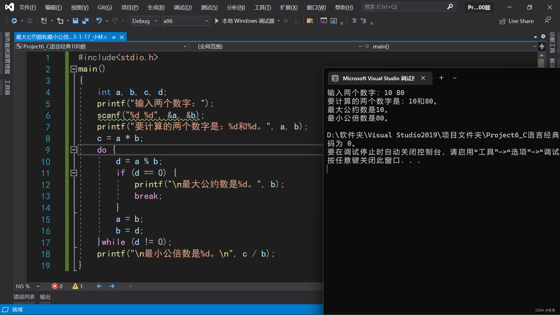 C语言编程实现求两个数的最大公约数和最小公倍数