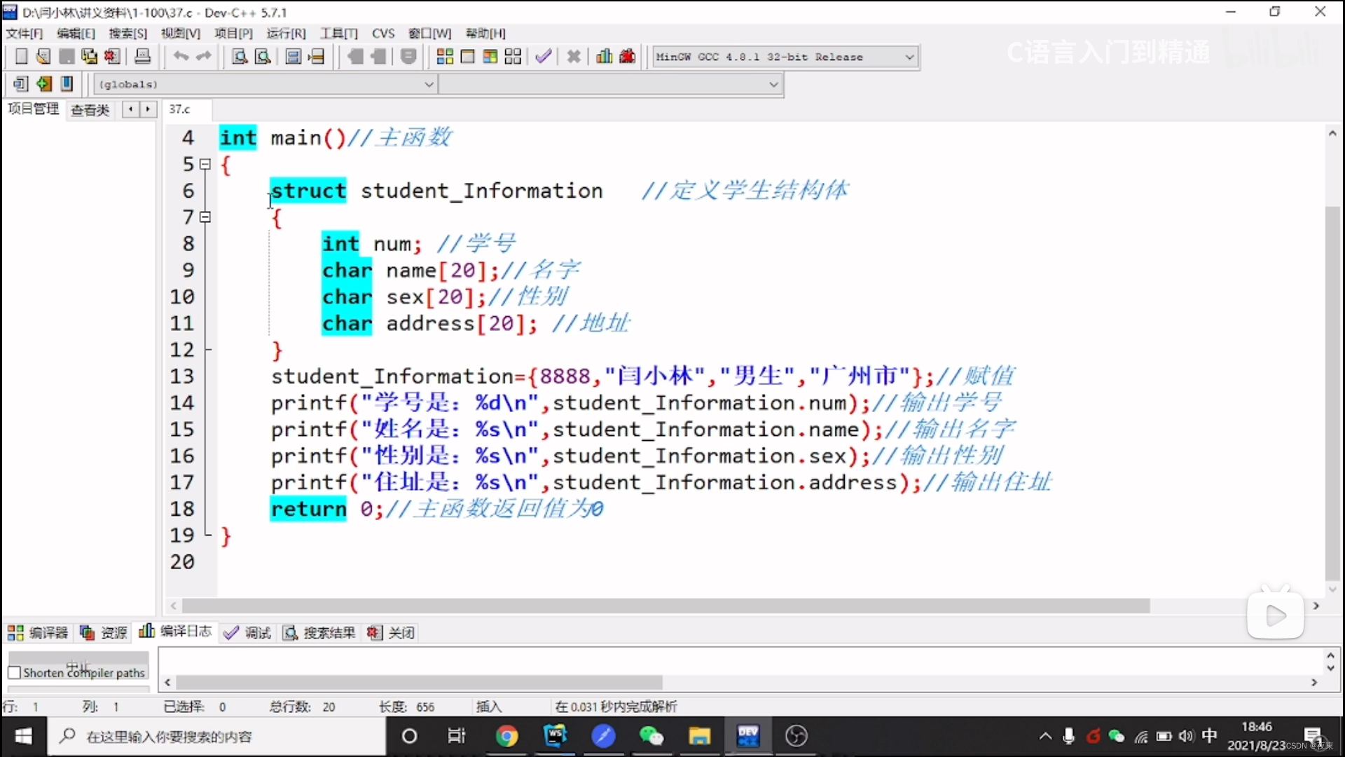 没学会结构体,直接看视频。