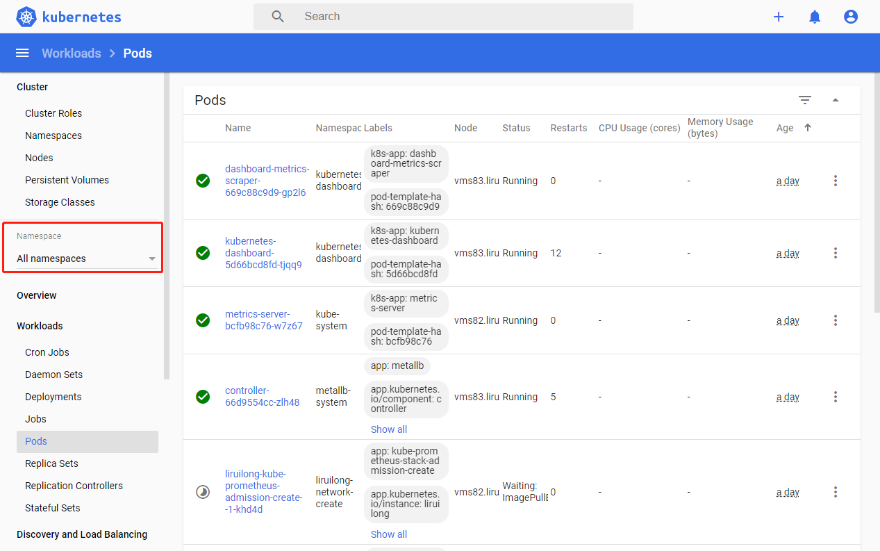 Namespace: kubernetes-dashboard