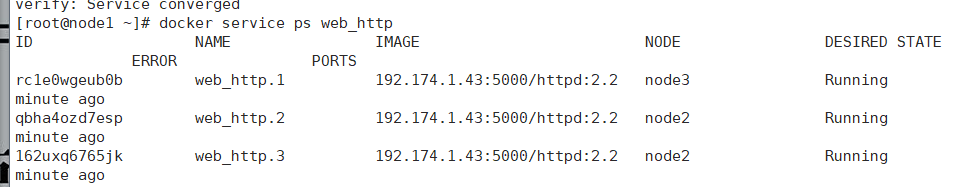 docker service create --name web_http --replicas 3 192.174.1.43:5000/httpd:2.2 (启动的服务)