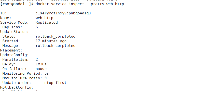 swarm 还有方便的功能就是回滚,如果更新后效果不理想,可以通过--rollback快速恢复到更新之前的状态。