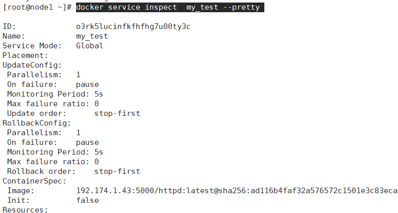 docker service create --mode global --name my_test 192.174.1.43:5000/httpd