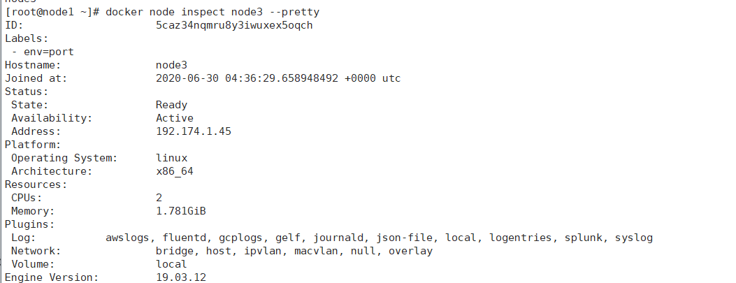 docker node update --availability active node1