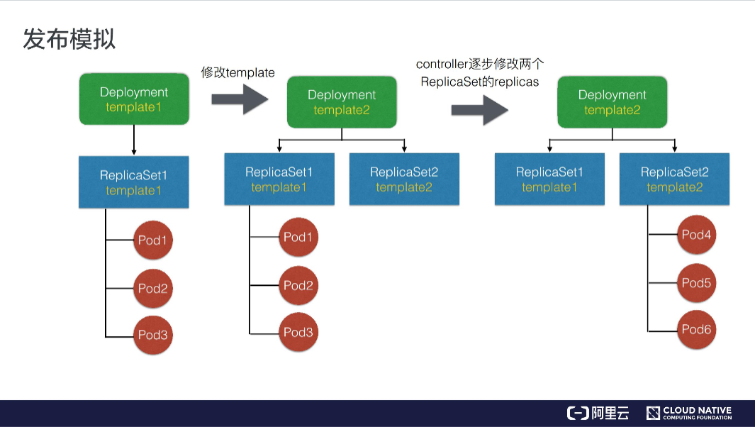 阿里云大学的云原生课堂也给出滚动升级的模拟图