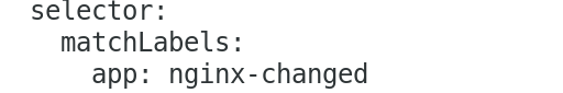 # * spec.selector: Invalid value: v1.LabelSelector{MatchLabels:map[string]string{"app":"nginx-changed"}, MatchExpressions:[]v1.LabelSelectorRequirement(nil)}: field is immutable
