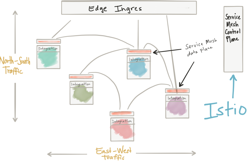 像Istio这样的服务网格将其简化了很多。 使用Istio,应用程序的所有实例都有自己的sidecar容器。 该Sidecar充当所有传出和传入网络流量的服务代理。
