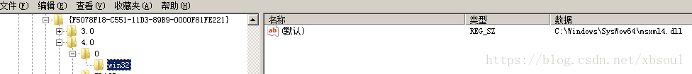 我把HKEY_CLASSES_ROOTTypeLib{F5078F18-C551-11D3-89B9-0000F81FE221}4.0 win32 键值修改成 C:WindowsSysWow64msxml4.dll,问题解决了。