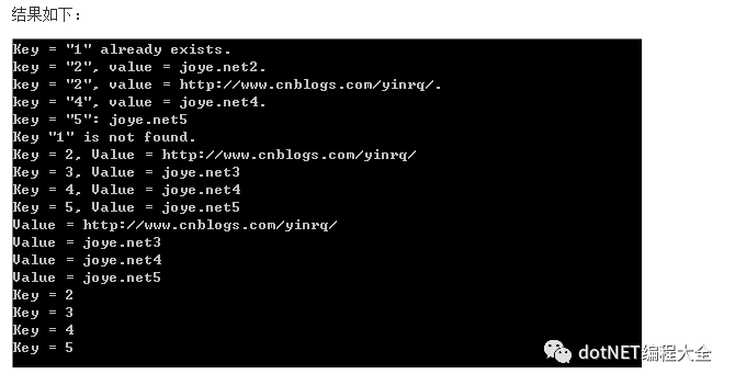 myDic.Add("5", "joye.net5");