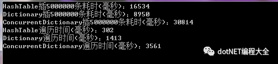 遍历HashTable最快是Dictionary的1/5,ConcurrentDictionary的1/10