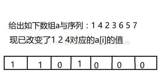 那么,对于最新处理的2或任意一个n(设下标为i)来说,前i个数中,比它小及其本身的数的个数,就是前i项的前缀和,因为排在原序列中i之后的数尚未处理,而已处理的a中比他小的数必然在它前面,且对应a[]值为1,那么,已处理的i个数中,比这个数n大的数的个数,也就是这一个数的逆序对数,就是i-getsum(n),而前缀和的求值与a数组的修改、维护,就可以交给树状数组了: