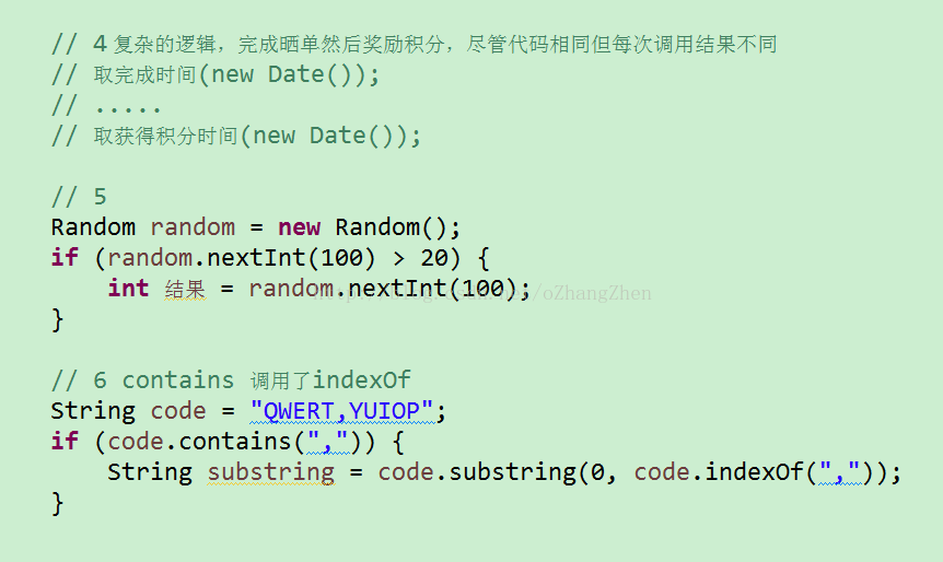 这些代码,有的是毫无意义,只是让代码更啰嗦难以阅读难以维护,并且浪费空间,有的则会导致bug。第6个是很常见的如果xx则截部分字符串的问题,contains是调了indexOf,不如直接用indexOf然后判断返回值然后把返回值作为索引。这样只做一次而不是同样的事情做两次。其他的例子完全可以alt + shift + l快捷键。想再好点的话,1 、2这种完全可以把挨个匹配改为二分搜索。