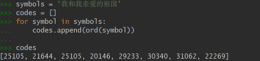 演示1 把一个字符串变成Unicode码位的列表