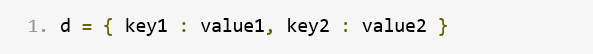 字典是 Python 最强大的数据类型之一,通过键-值对的方式建立数据对象之间的映射关系。字典的每个键-值对用冒号:分割,每个键-值对间用逗号,分隔开,字典则包含在{}中。格式如下: