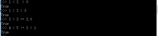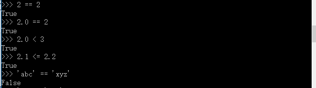 比较操作符用来判断同类型对象是否相等,所以内建类型均支持比较运算,比较运算返回布尔值True或者False。