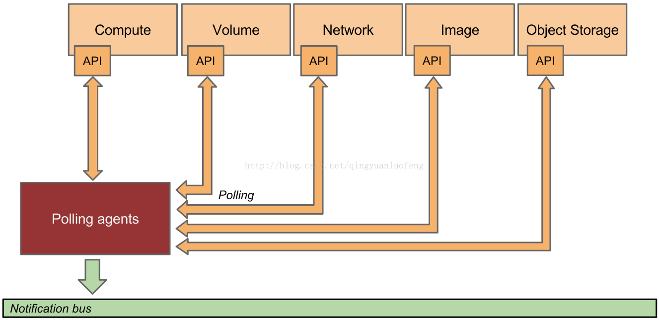 第一种方法被ceilometer的通知代理所支持,监控消息队列中的通知。