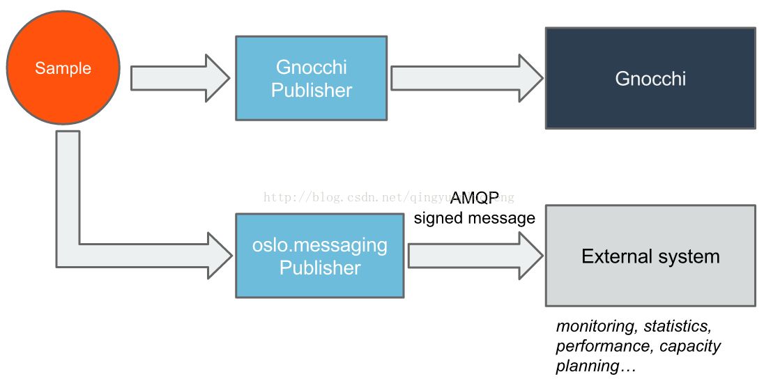 2)oslo.messaging Publisher:通过AMQP的签名消息发送到外部系统,例如监视器,统计,容量等。