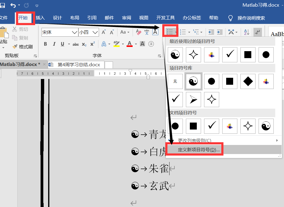 8.添加项目符号-可以在自定义中选择新的符号