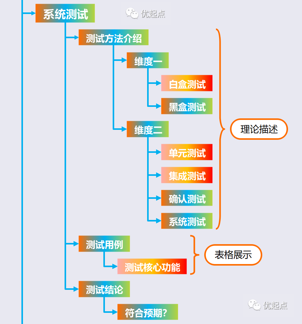 毕业论文的系统测试这一章该写哪些内容呢?下面给出一个导图,供你参考。