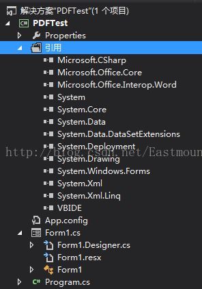添加后,查看工程解决方案中引用,会看到引用到工程中的word对象如下图所示,这里会引用Microsoft.office.Interop.Word对象.