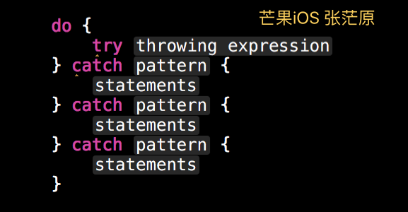 一个do语句创建了一个新的包含作用域,可以把错误能被传播到一个或多个catch从句。