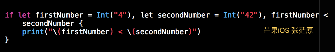 也可以包含多个可选绑定或多个布尔条件在一个 if 语句中,只要使用逗号分开就行: