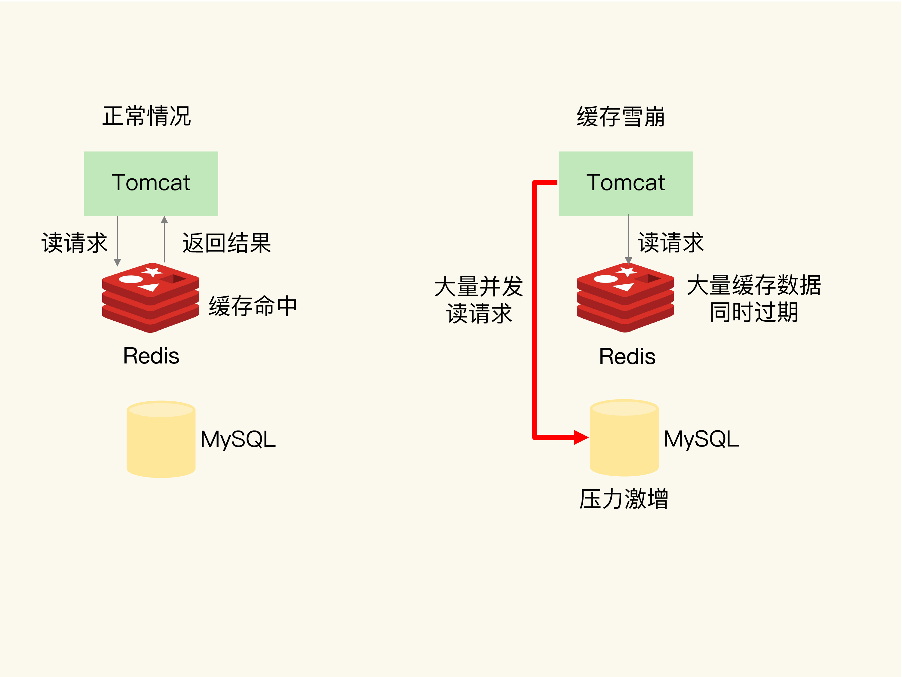 缓存雪崩是指大量的应用请求无法在Redis缓存中进行处理,紧接着,应用将大量请求发送到数据库层,导致数据库层的压力激增。