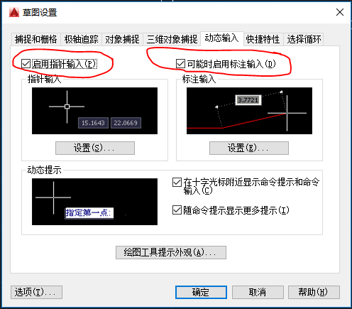 将 草图设置 中 选择 动态输入 ,将图中标红的两个选项的勾选去掉。点击 确定 。