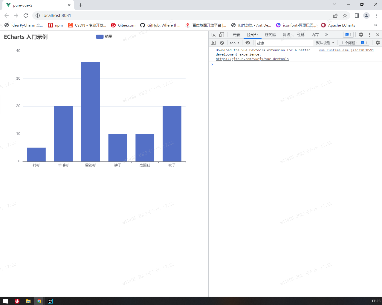 也可以直接在组件中进行echarts的引入:(此方法也是react中全量引入的方法)