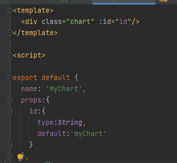 但是此方法缺点也很显著,因为id在页面中得是唯一的。当该echarts图是个复用组件的时候,就得通过props将id传入组件中进行挂载: