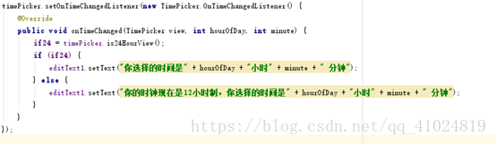 (2) 既可以使用24小时制,也能使用am/pm(上图为am/pm),可以用is24HourView()方法来知道timepicker现在是否为24小时制,该方法返回值为布尔类型。
