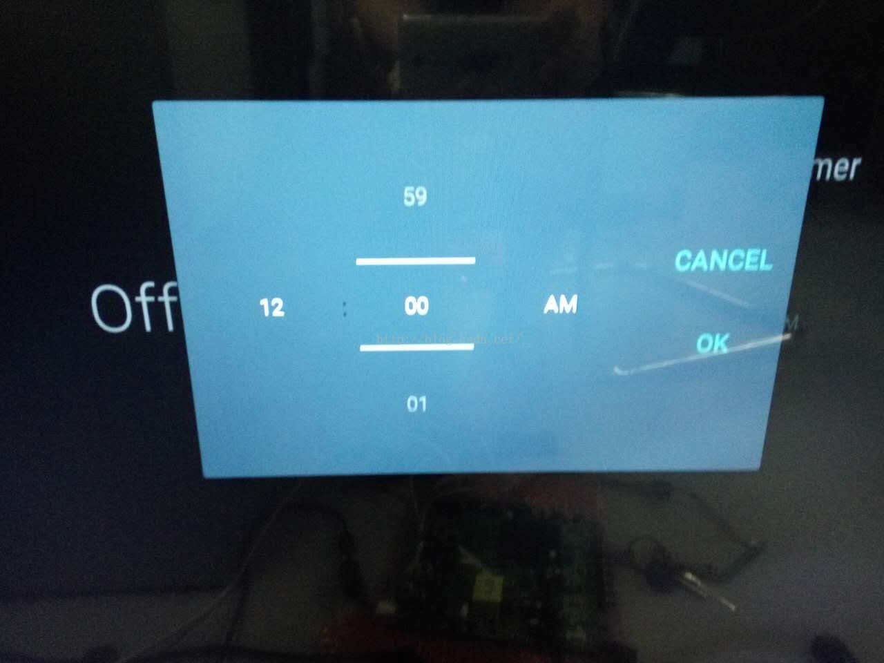 可以看到TimePicker有两种模式:MODE_CLOCK和MODE_SPINNER。我猜想我需要的是spinner,所以我就在这里强制把mode配置为MODE_SPINNER,然后更新完系统Jar包后发现果不其然,这个时候TimePickerDialog变成了这样: