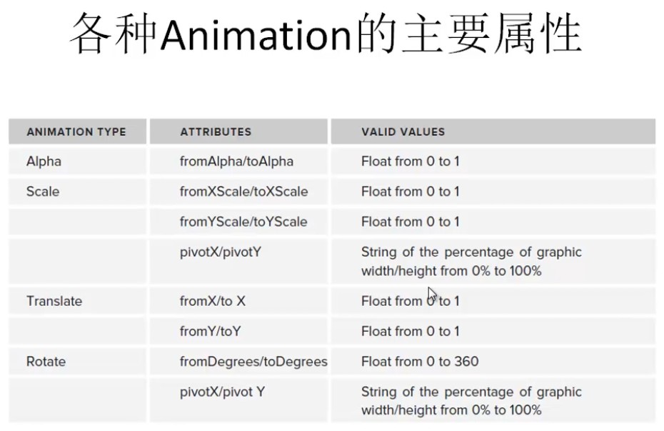 以上就是清新冥王星最近收集整理的关于【067】◀▶ Android (III) - 其他和动画●·● 目录:●·● Color 类:●·● Log 类:●·● KeyEvent 类:●·● MotionEvent 类:●·● Uri 类:●·● WindowManager 接口:●·● Display 类:●·● Animation 类:●·● AnimationSet 类:●·● AlphaAnimation 类:●·● RotateAnimation 类:●·● ScaleAnimation 类:●·● TranslateAn的全部内容,更多相关【067】◀▶内容请搜索靠谱客的其他文章。