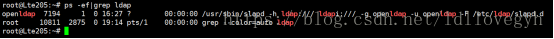 笔者搭建的环境基于Ubuntu 16.04.3,启动服务/etc/init.d/slapd restart,启动后可通过查看进程的方式观测效果: