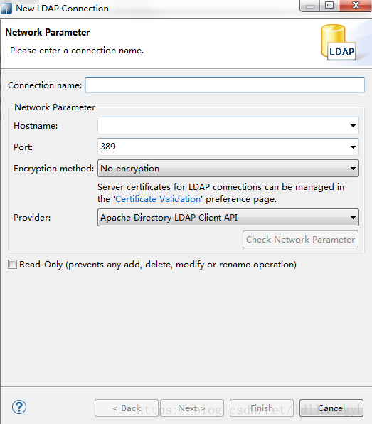 在官网下载windows版本下的zip包,解压执行可执行文件即可。配置Ldap所安装的主机ip和端口号(一般为389):