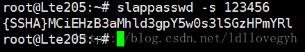 在Ldap服务启动正常的情况下,键入slappasswd -s 123456(为管理员账号密码)命令,会产生加密后的密码: