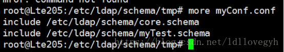我们在/etc/ldap/schema目录(根据个人情况,可能路径有所不同)下,添加myTest.schema,并加上属性和类名的信息: