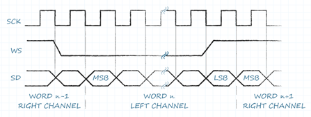 与PDM不同,I²S是完全数字信号,不需要编码或解码,且没有普遍要求的数据传输速度,但是,最低速度取决于正在传输的数据及其精度。如果音频采样率是44.1 kHz的行业标准,精度为8位,那么单声道通道将需要至少352.8 kHz的时钟速度。立体声应用将是705.6 kHz的两倍,精度的任何变化也会改变最小传输带宽。