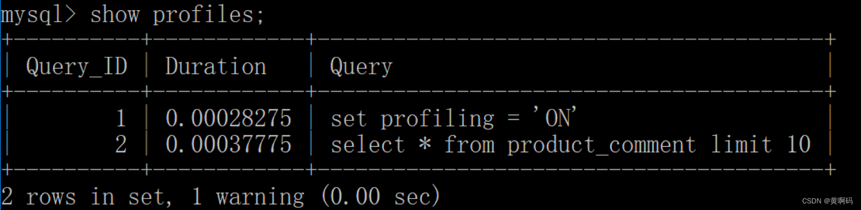 show variables like 'profiling';