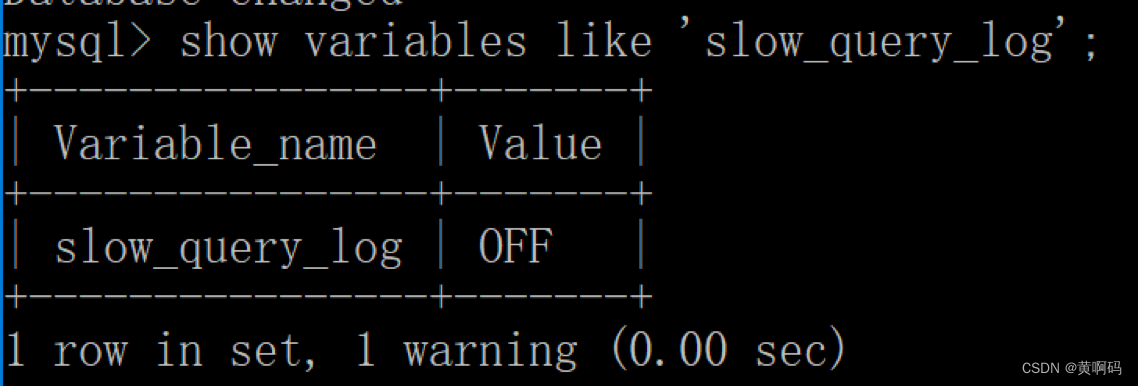 然后我们再来查看下慢查询日志是否开启,以及慢查询日志文件的位置: