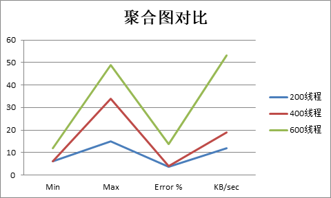 除去图形结果已对比度指标,我们选取了Min、Max、Error%和KB/sec进行对比,可见600并发进程的明显处理效果落后,最大、最小响应时间、响应错误率、每秒种请求的字节数明显上升,系统承载力、资源使用率、并发容量明显不济,与图形结果所得出的结果基本一致,验证了500进程数为系统秒级阀值的结论具有一定可靠性和科学性。