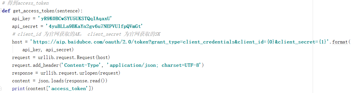 因此可以通过下面的来调用百度ai的api:
