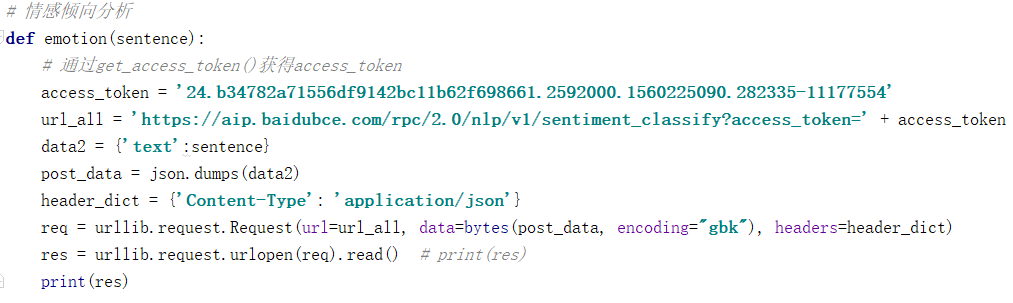 下面将以一个例子来讲解百度ai的api的调用方法。(情感倾向分析)