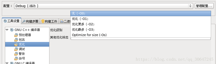 在Eclipse项目属性,C/C++构建,设置,很多人都会因为打开了优化之后在调试程序的时候下的断点代码行和实际断点行不一致,使调试边的更加困难。我之前在调试代码的时候也遇到过同样的问题,在公司大牛的提醒下,关闭了优化选项,设置成了“无”.