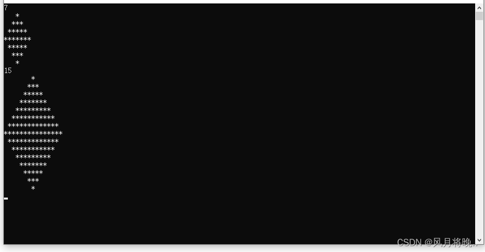 现给出菱形的高度,要求你打印出相应高度的菱形,比如上面的菱形高度为7。