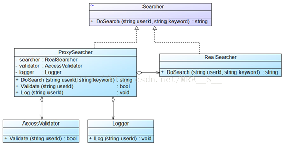 本实例是保护代理和智能引用代理的应用实例,在代理类ProxySearcher中实现对真实主题类的权限控制和引用计数,如果需要在访问真实主题时增加新的访问控制机制和新功能,只需增加一个新的代理类,再修改配置文件,在客户端代码中使用新增代理类即可,源代码无须修改,符合开闭原则。